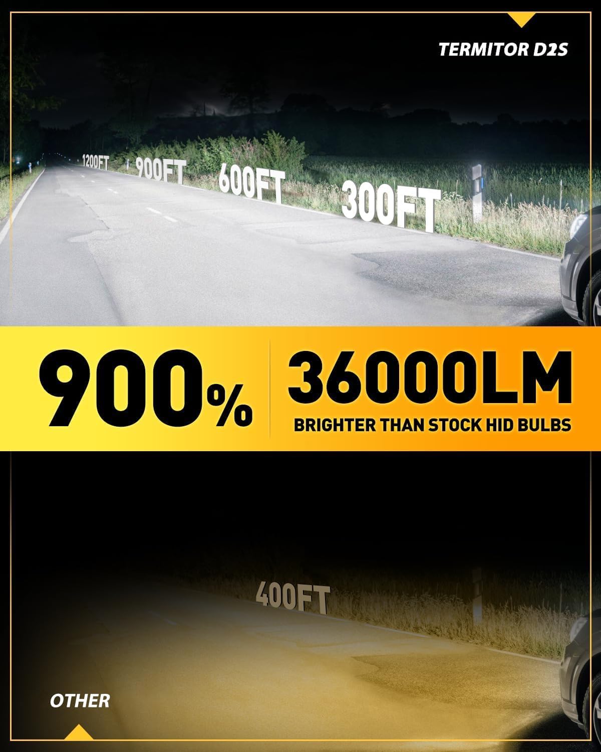 The FAHREN Termitor D2S bulbs utilize cutting-edge 36-CSP high-performance chips to produce illumination that’s 10 times brighter than standard OEM bulbs. With 50,000 lumens of 6500K pure white light, these bulbs create a focused beam that extends your visibility three times further than stock lighting. This dramatic improvement allows you to clearly identify pedestrians, obstacles, and road signs even in challenging conditions like pitch darkness, heavy rain, or dense fog. The enhanced visibility significantly improves your reaction time and overall driving safety, giving you confidence behind the wheel regardless of conditions.