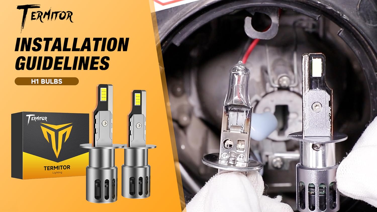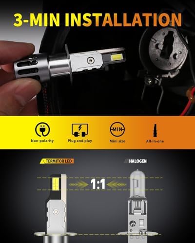 FAHREN TERMITOR has engineered these H1 bulbs to match the exact dimensions of standard halogen bulbs, creating a true 1:1 replacement that fits perfectly in your existing housing. This thoughtful design eliminates the need for modifications, adapters, or external drivers—simply remove your old bulbs and plug in the TERMITOR LEDs. The all-in-one assembly integrates the driver within the bulb housing, maintaining compatibility with your vehicle’s dust covers and ensuring proper fitment. This plug-and-play approach makes installation quick and straightforward, with no special tools or technical expertise required.