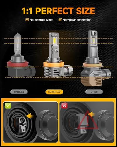 The FAHREN TERMITOR engineering team has achieved a remarkable breakthrough with their authentic 1:1 mini design. Unlike competing LED solutions that require bulky bases and external drivers, these H11 and 9005 bulbs maintain the exact dimensions of original halogen bulbs. This innovative approach eliminates fitment issues in vehicles with limited lens space or tight headlight housings. The streamlined design also features non-polarity installation, delivering true plug-and-play functionality without complex adjustments or modifications to your vehicle’s electrical system.