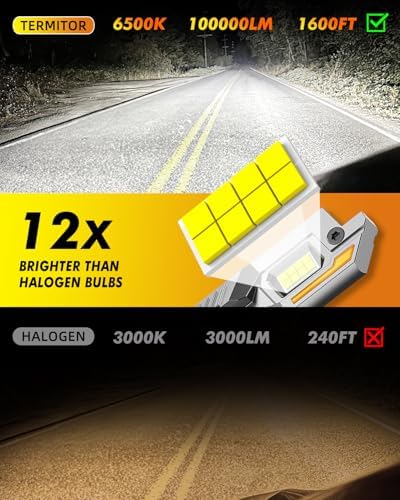 The FAHREN TERMITOR LED headlight bulbs provide an astonishing 1200% more brightness compared to standard halogen bulbs. This dramatic improvement illuminates more of the road ahead, revealing potential hazards earlier and extending your visual range significantly. The advanced E30 technology ensures consistent, efficient light output that creates optimal conditions for nighttime driving. With a crisp 6500K cool white color temperature, these bulbs produce a modern, clean light that reduces eye strain during extended nighttime journeys.